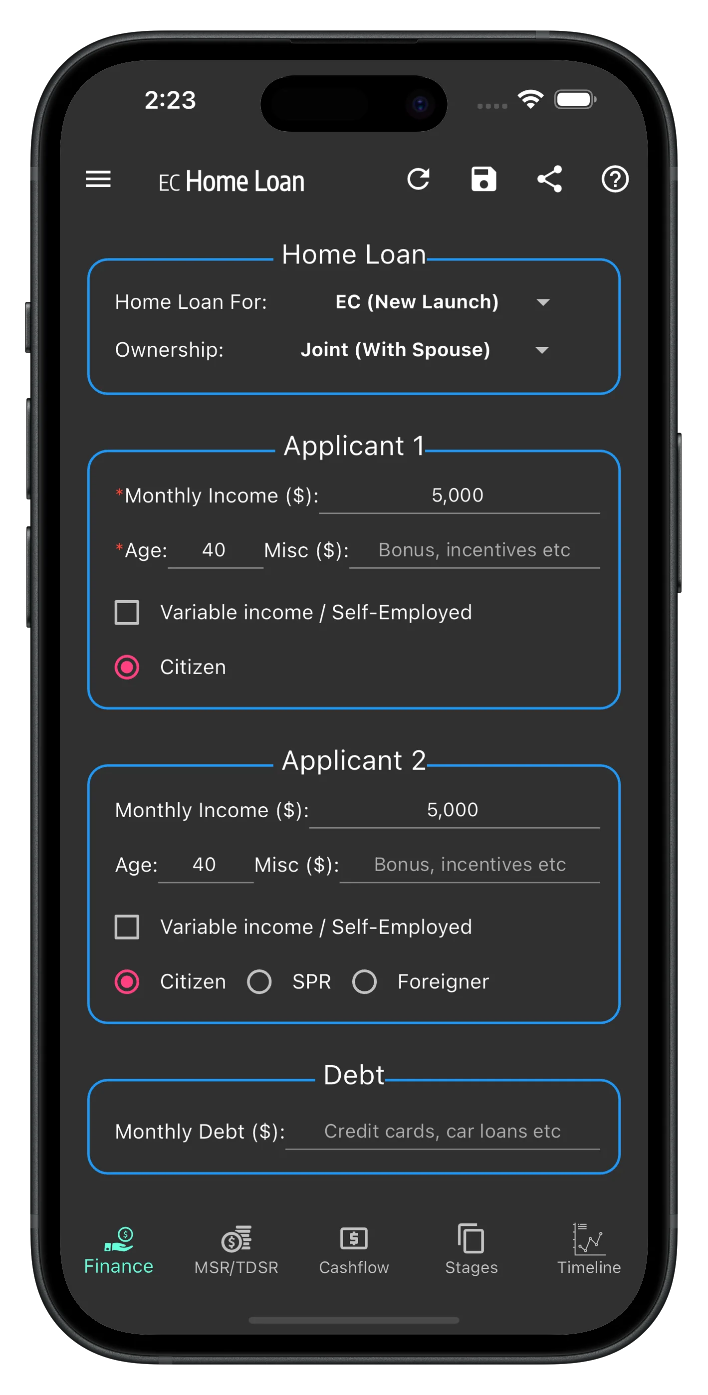 Swipe or tap to view how much loan you can take using MSR or TDSR