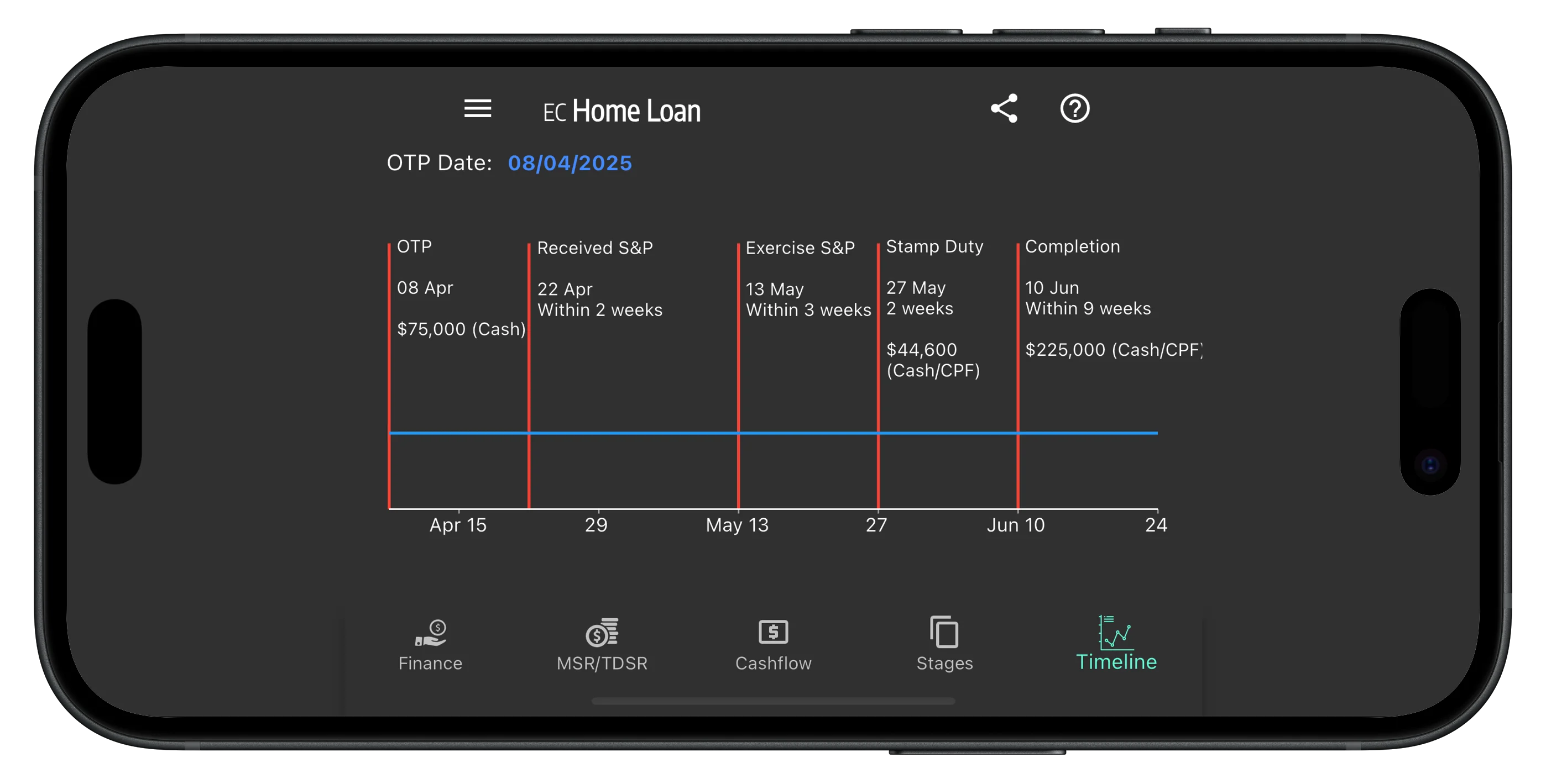 This feature helps users understand the actual cash and CPF outlay required before the home loan is fully disbursed. It breaks down your financial commitment in the early stages of the property purchase, which is crucial for budgeting and cashflow planning.